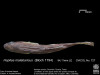 El patrón de coloración de los individuos de esta especie se caracteriza porque la zona dorsal del cuerpo es de color marrón, con la zona ventral más clara, a lo largo del cuerpo se diferencian dos líneas longitudinales más oscuras, de aspecto moteado, por detrás del ojo se observan tres líneas oscuras. |
