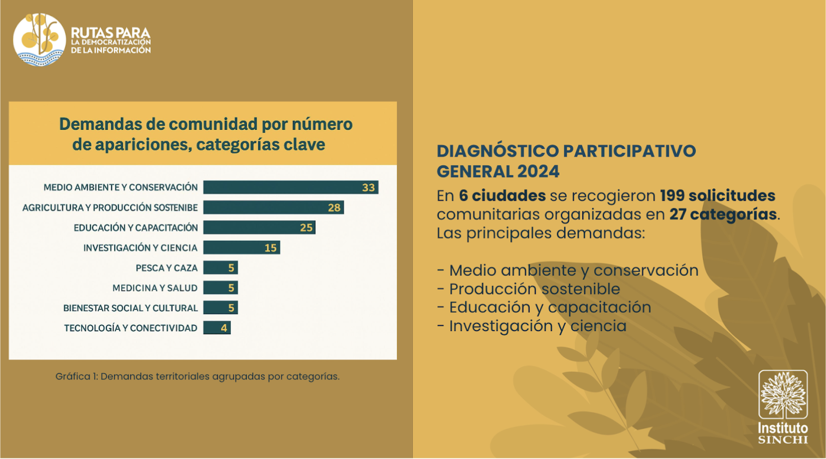 Además de su histórico trabajo con las comunidades en todos sus programas misionales, el Instituto SINCHI está adelantando los Talleres para la Democratización de la Información. Iniciativa que tiene como propósito realizar un diagnóstico actualizado que permita identificar y priorizar la información más relevante de su oferta institucional para ser divulgada en la Amazonia colombiana.