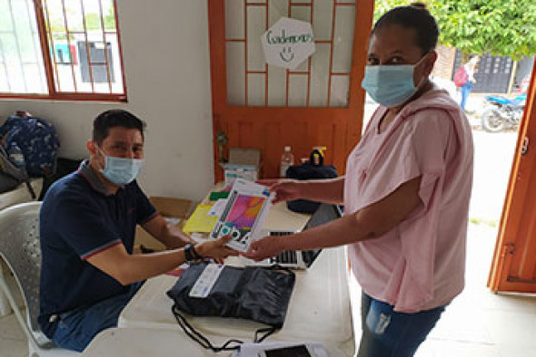 Representantes de 30 organizaciones sociales de los municipios de Mesetas, San Juan de Arama, Vistahermosa y Puerto Rico, del sur del departamento del Meta, recibieron tablets con acceso a internet y capacitación para acceder a contenidos y espacios de interacción web, como parte de su participación en la Escuela Campesina de Economía Solidaria y Sostenibilidad para la Gobernanza – ECAES.