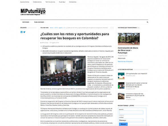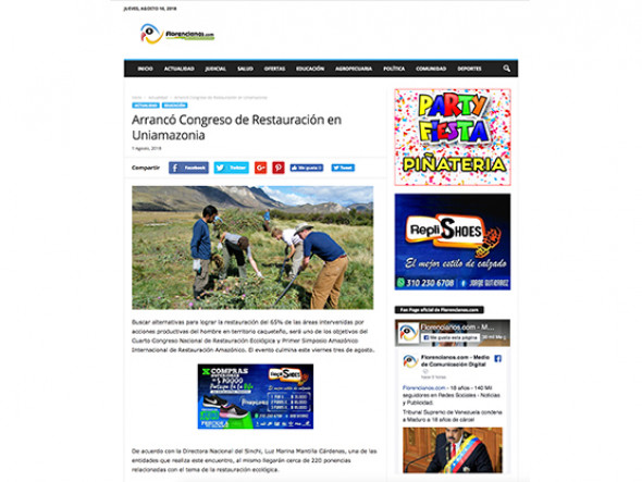 Buscar alternativas para lograr la restauración del 65% de las áreas intervenidas por acciones productivas del hombre en territorio caqueteño, será uno de los objetivos del Cuarto Congreso Nacional de Restauración Ecológica y Primer Simposio Amazónico Internacional de Restauración Amazónico. El evento culmina este viernes tres de agosto.
