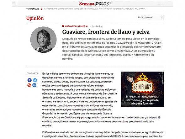 Después de revisar con lupa el mapa de Colombia para ubicar en la compleja geografía andina el nacimiento de los ríos Guayabero (en la Macarena) y Ariairi (en el Páramo de Sumapaz) pude entender la etimología del nombre Guaviare, departamento de la Orinoquia con selvas amazónicas. A las puertas de su capital, San José, se juntan estos dos largos ríos que dan nacimiento a su nombre.