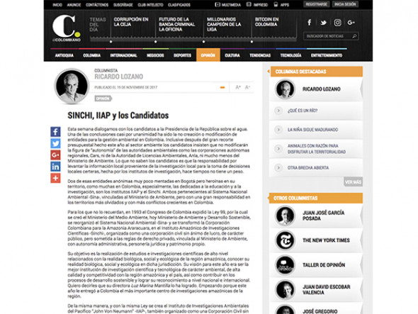 Esta semana dialogamos con los candidatos a la Presidencia de la República sobre el agua. Una de las conclusiones casi por unanimidad ha sido la no creación o modificación de entidades para la gestión ambiental en Colombia. Inclusive después del gran recorte presupuestal hecho este año al sector ambiente los candidatos insisten que no modificarán la figura de “autonomía” de las autoridades ambientales como las corporaciones autónomas regionales, Cars, ni de la Autoridad de Licencias Ambientales, Anla, ni mucho menos del Ministerio de Ambiente. Lo que no saben los candidatos es que la responsabilidad por levantar la información local proveniente de la investigación local para la toma de decisiones locales certeras, hecha por los institutos de investigación, hace tiempos no tiene un peso.